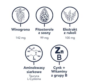 | Ekstrakt z winogron (Vitis vinifera L.) (w tym 142 mg OPC**) | 150 mg | |