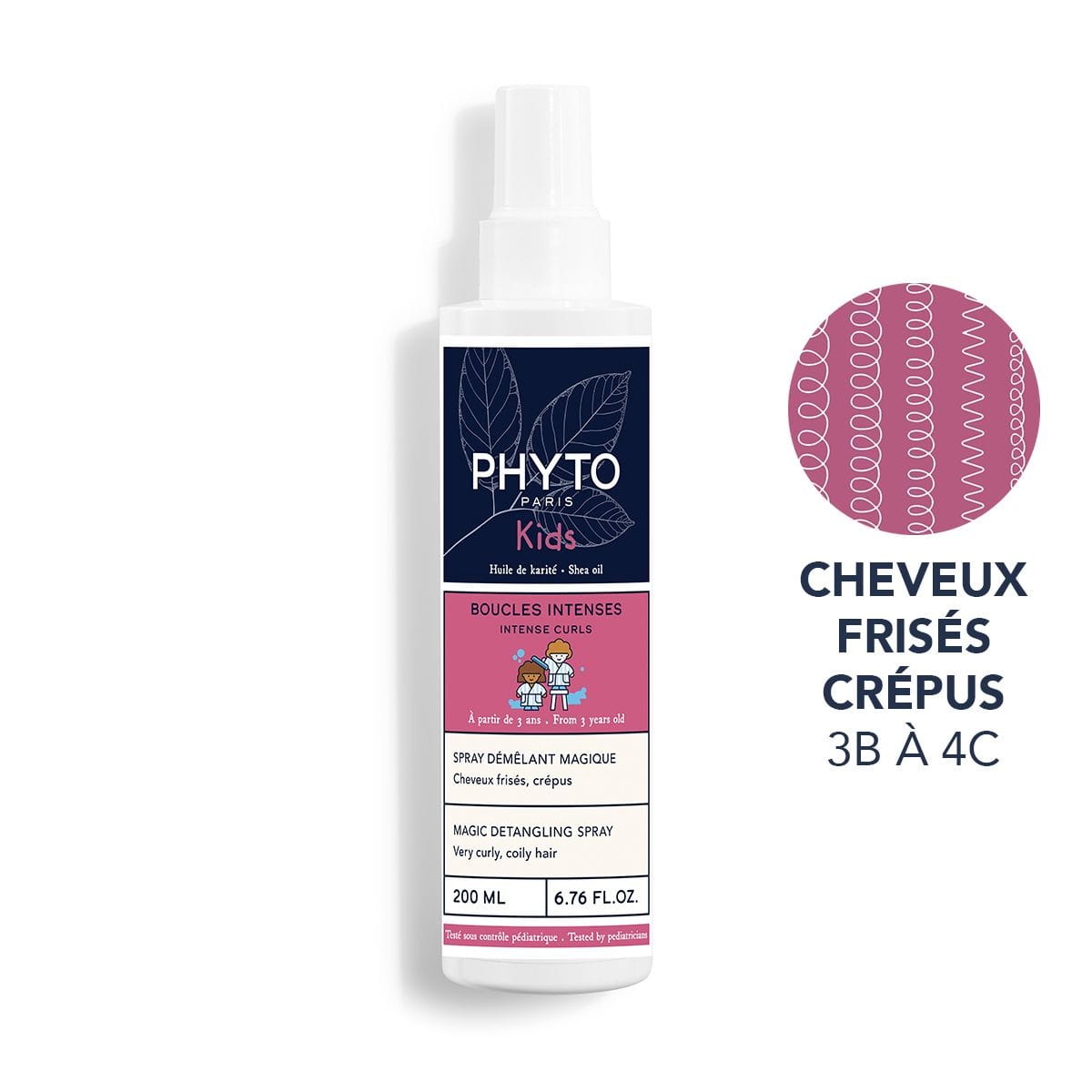 Fini les pleurs ! Le spray BOUCLES INTENSES KIDS non gras et non collant, discipline, démêle instantanément et limite la casse des cheveux frisés et crépus des enfants à partir de 3 ans. Les cheveux sont souples, brillants et tellement plus faciles à coiffer ! Au cœur de la formule, l'huile de karité renforce le film lipidique pour nourrir la fibre et le miel d’acacia lisse les écailles pour des cheveux tout doux.