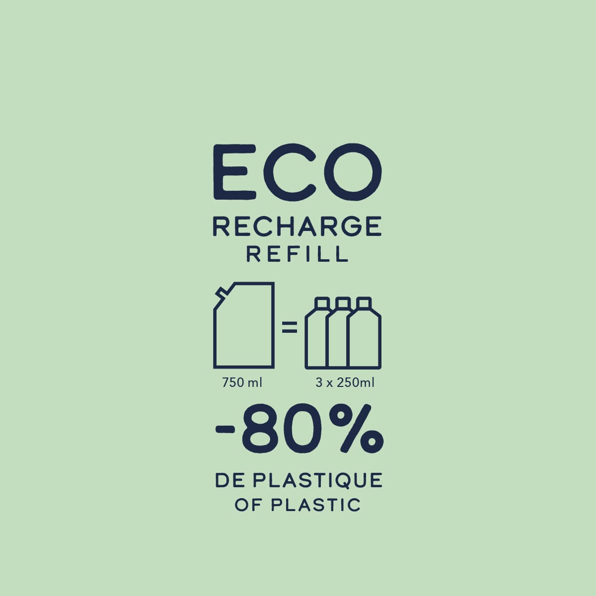 L'écorecharge PHYTO permet d'économiser 80% de plastique.